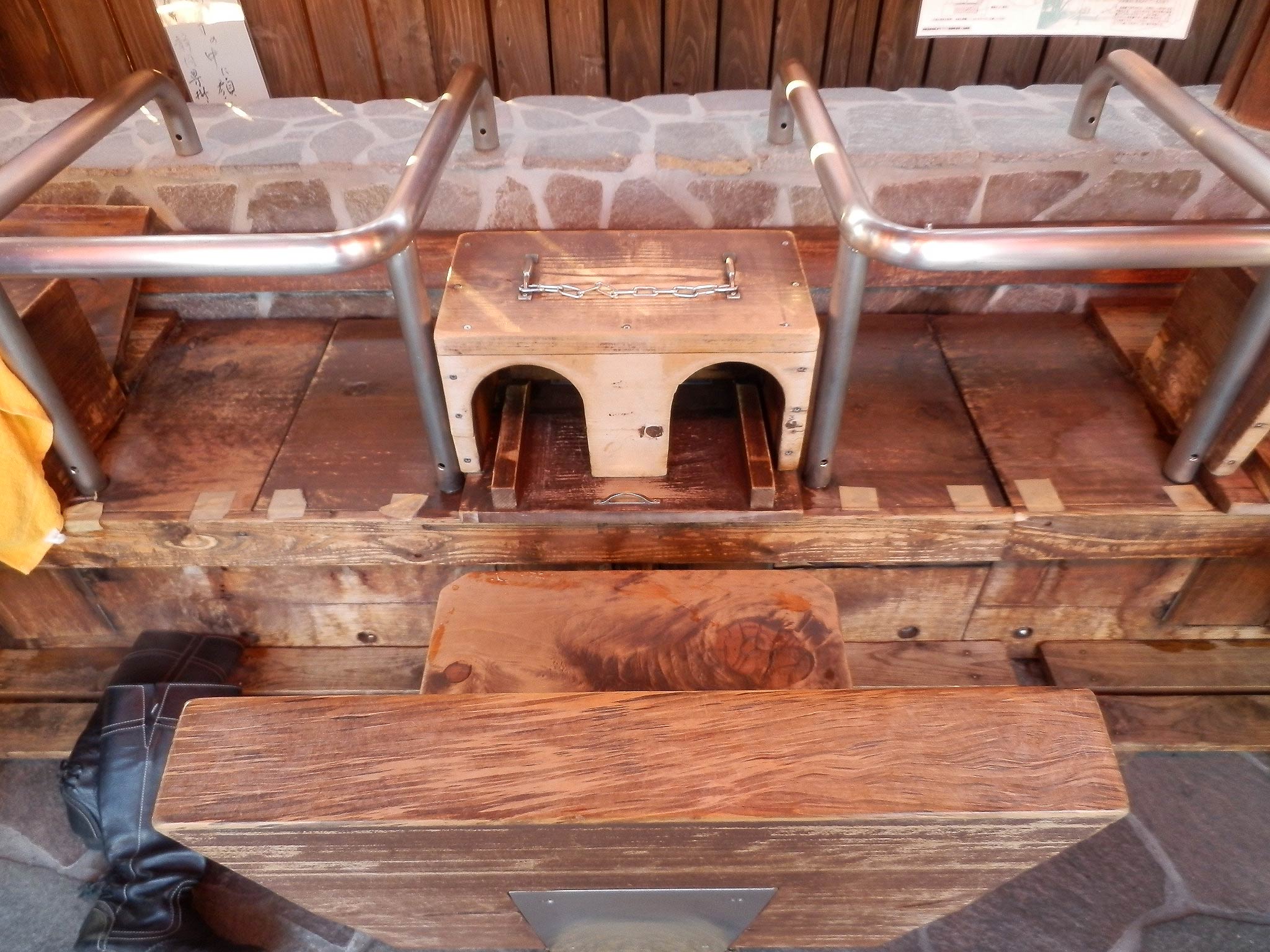 受付で浴衣をレンタルし(Tシャツと短パンを持参なら無料)脱衣場へ入るとまず係の方から「浴室で前と後ろだけ洗ってから湯浴み着に着替えてください」との説明を受ける。浴衣に着替えると今度はむし湯に入る為の説明を受ける。むし湯に入る時間は8分〜15分?で好きな時間を選べ、時間が経つと声を掛けてくれます。